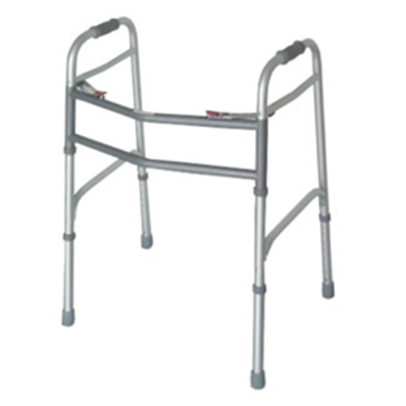 Este andador plegable bariátrico de aluminio ofrece mayor estabilidad al caminar. Deben utilizarse ambos brazos para usarlo.