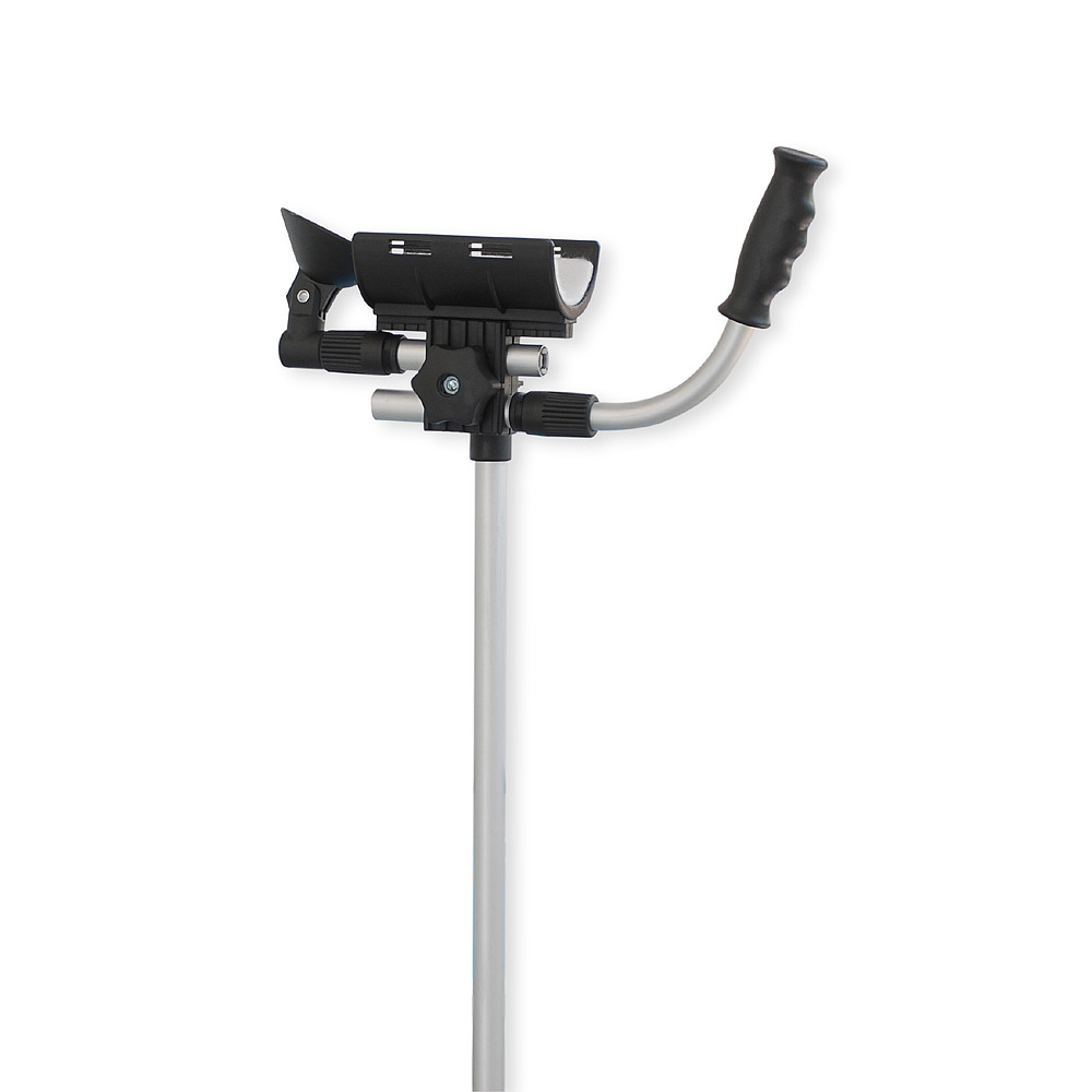 Bastón inglés con apoyo de antebrazo de altura graduable fabricada en aluminio, lo que hace que sea muy ligera.