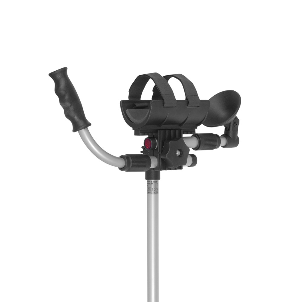 Para colocar el bastón a la altura correcta, hágalo con los zapatos de uso habitual y estando de pie. Se debe ajustar de manera que la empuñadura esté a la altura de la muñeca de un brazo con el codo a 90º. El puño debe quedar a una distancia cómoda de agarrar cuando se tenga el codo apoyado en el antebrazo. Antes de empezar a utilizar este bastón asegúrese que la cinta que sujeta el antebrazo está bien sujeta. De este modo estará más cómodo y disminuirá el riesgo de caída.