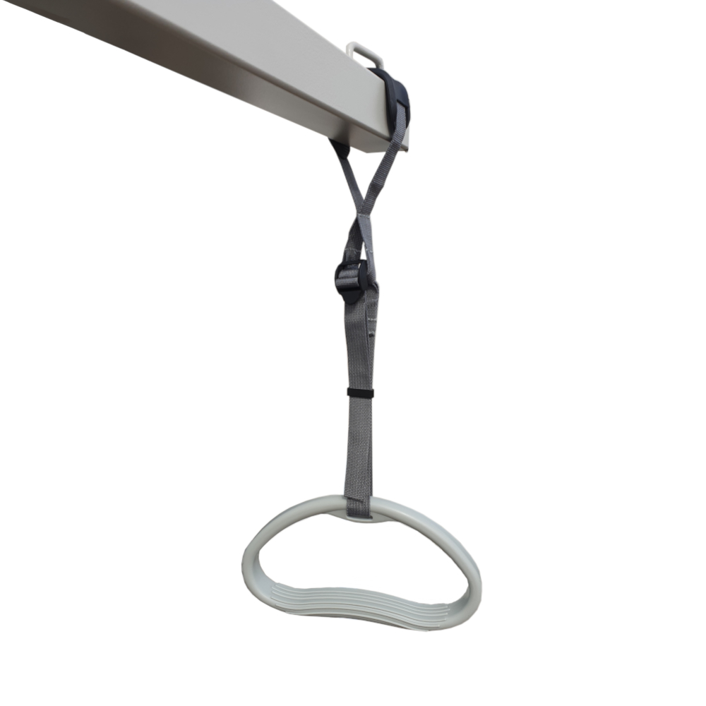Una vez montjado, hay que colocarlo en la parte trasera de la cama, de forma que quede colocado detrás de la persona que está acostada. El trapecio debe quedar delante de la persona para facilitar su levantamiento. Este trapecio se puede ajustar a la medida que desee el usuario, de manera que queden a la altura de los brazos una vez estén extendidos.