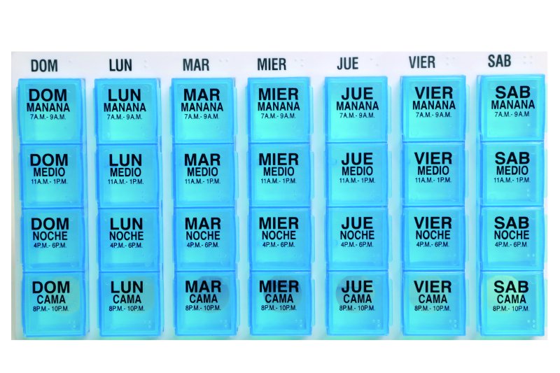 Las tomas y los días de la semana están indicados en español. De esta manera, es más fácil la identificación de la toma que se debe ingerir.