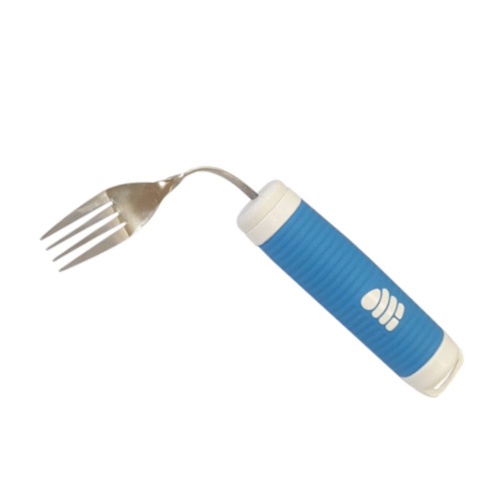 El tenedor y la cuchara se pueden doblar en diferentes sentidos y grados de ángulo para que se pueda utilizar cómodamente ya sea para una persona diestra o zurda o con cualquier tipo de dificultad en movimiento de manos, dedos o muñeca.