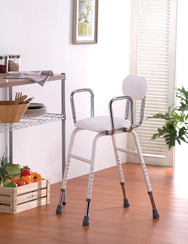 Esta banqueta multifunción con respaldo y brazos es ideal para cualquier trabajo doméstico que requiera una larga permanencia en pie. Con ella los trabajos como cocinar, planchar y fregar pueden resultar más sencillos, sin llegar a cansarse ni sentir molestias por permanecer en pie.