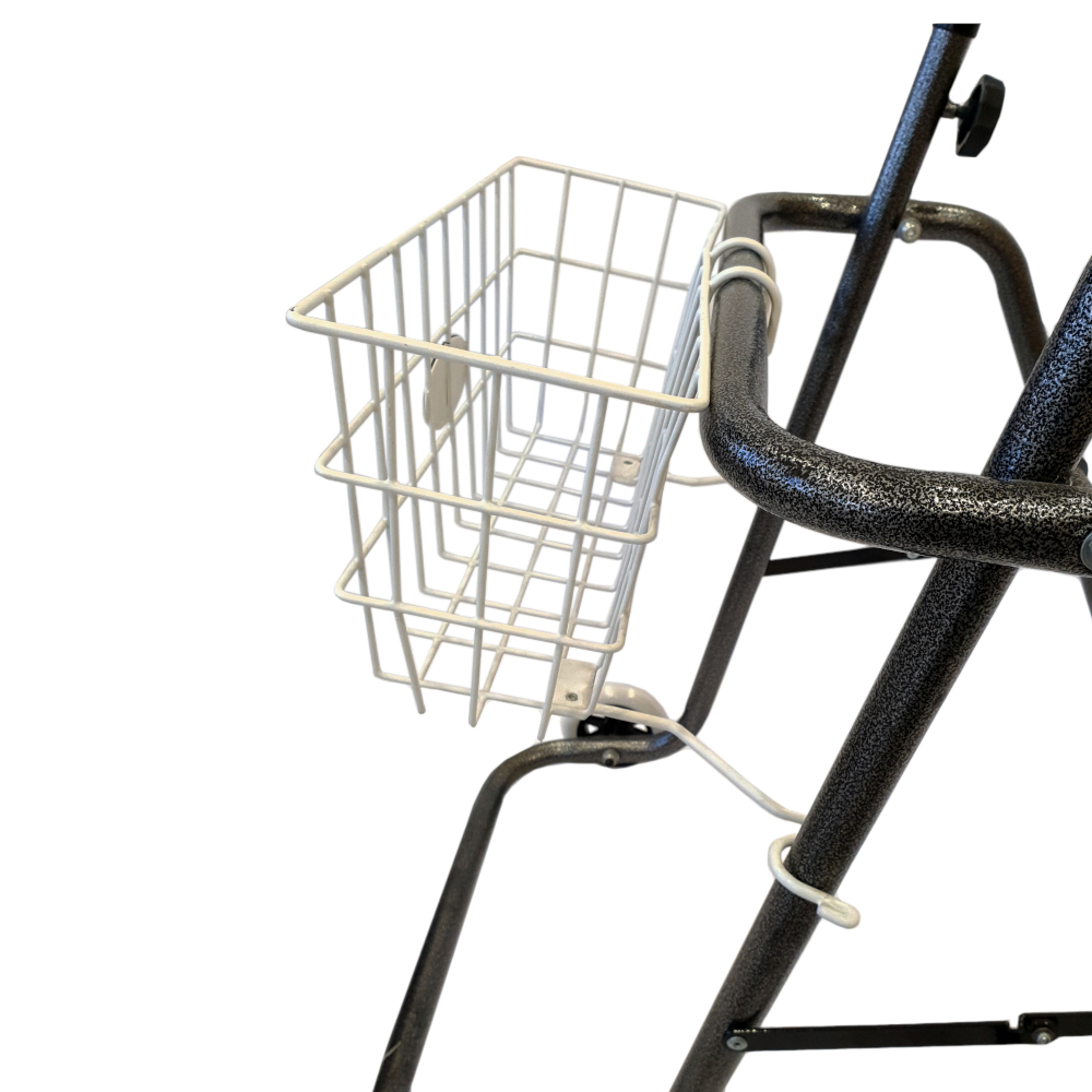 Esta cesta metálica para andadores ayuda a optimizarlo. Es un accesorio que permite llevar objetos pequeños cómodamente a la hora de salir de casa con el andador.