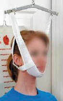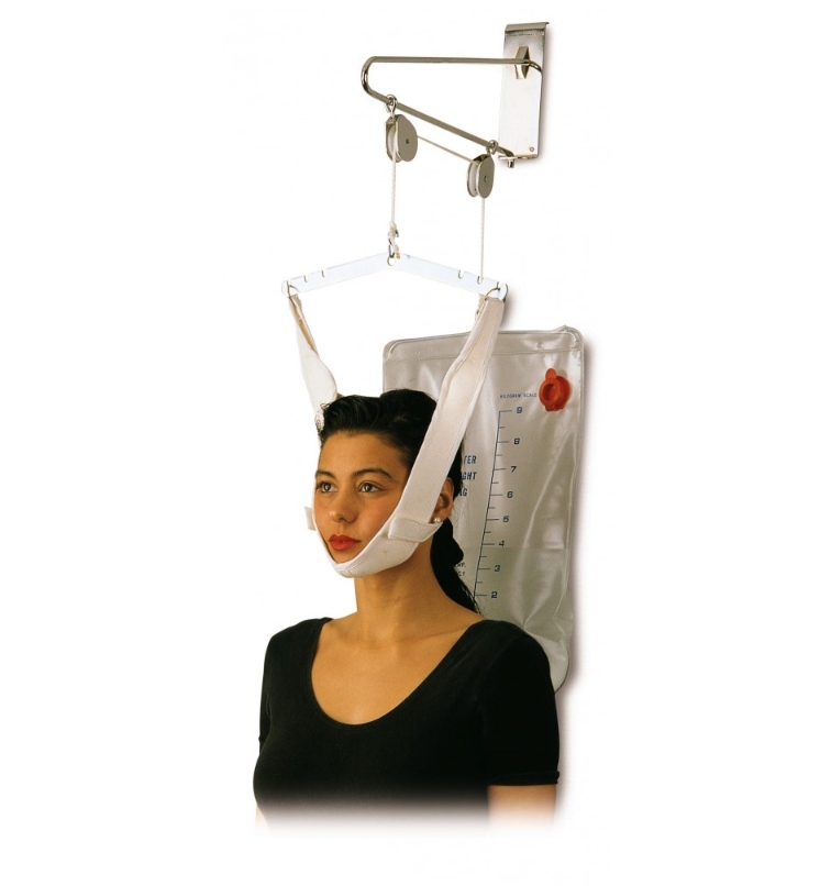 El aparato de tracción cervical levanta suavemente el peso de la cabeza de su cuello, controlando la cantidad de tracción. Puede ser usado para aliviar el dolor de cuello y la tensión muscular en la espalda, hombros y cuello asociado con la osteoartritis, fibromialgia, latigazo cervical y dolores de cabeza por tensión.