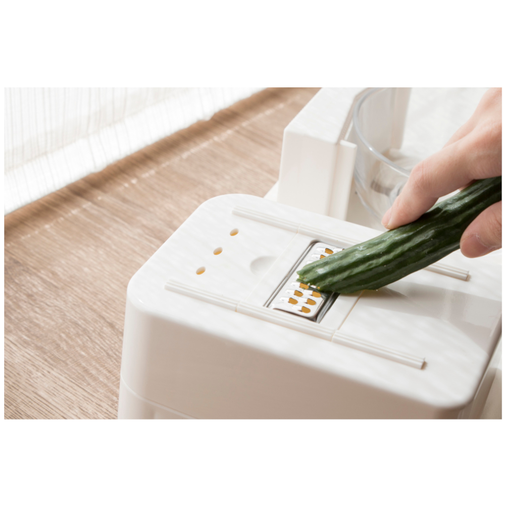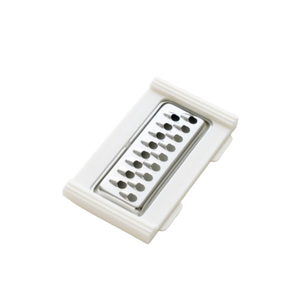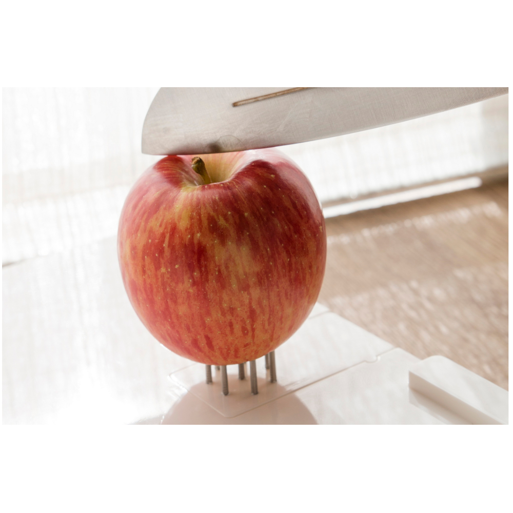 Tiene púas de acero inoxidable para colocar frutas y verduas y evitar así posibles resbalones y accidentes