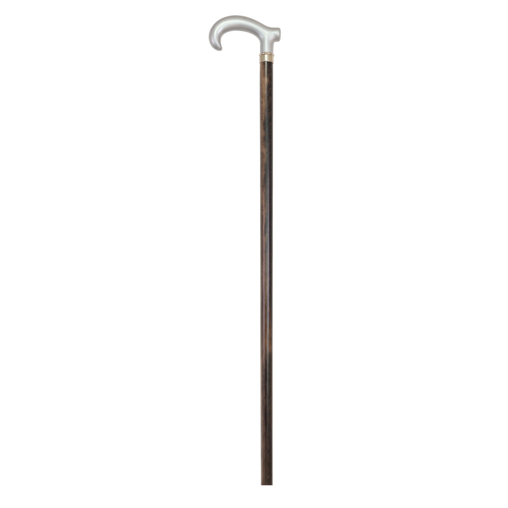 Esta muletilla está fabricada con palo de haya gris y puño derby plateado mate.
