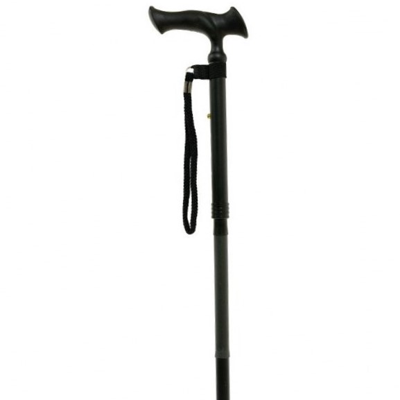 Esta muletilla plegable está fabricada en aluminio. El tubo es de color negro y el puño es ergonómico de tacto suave. Sus características principales son las siguientes: