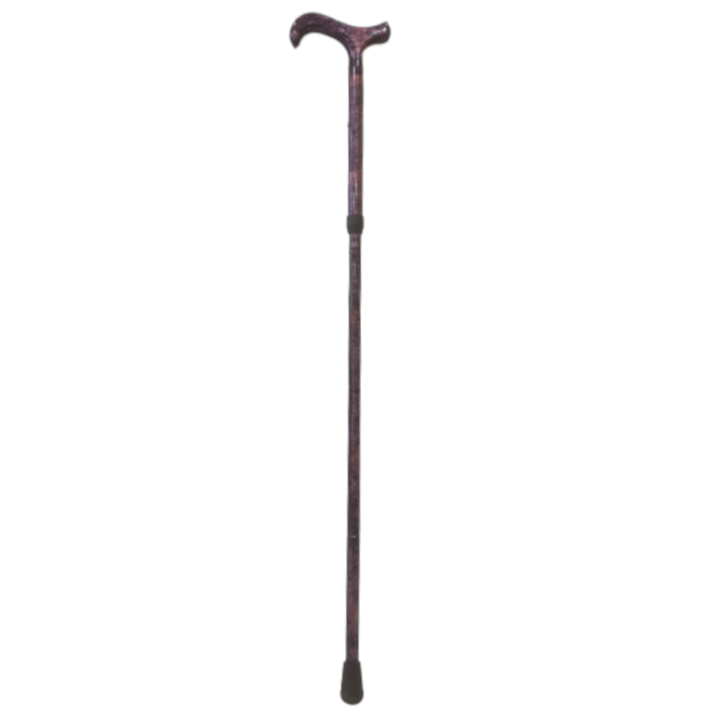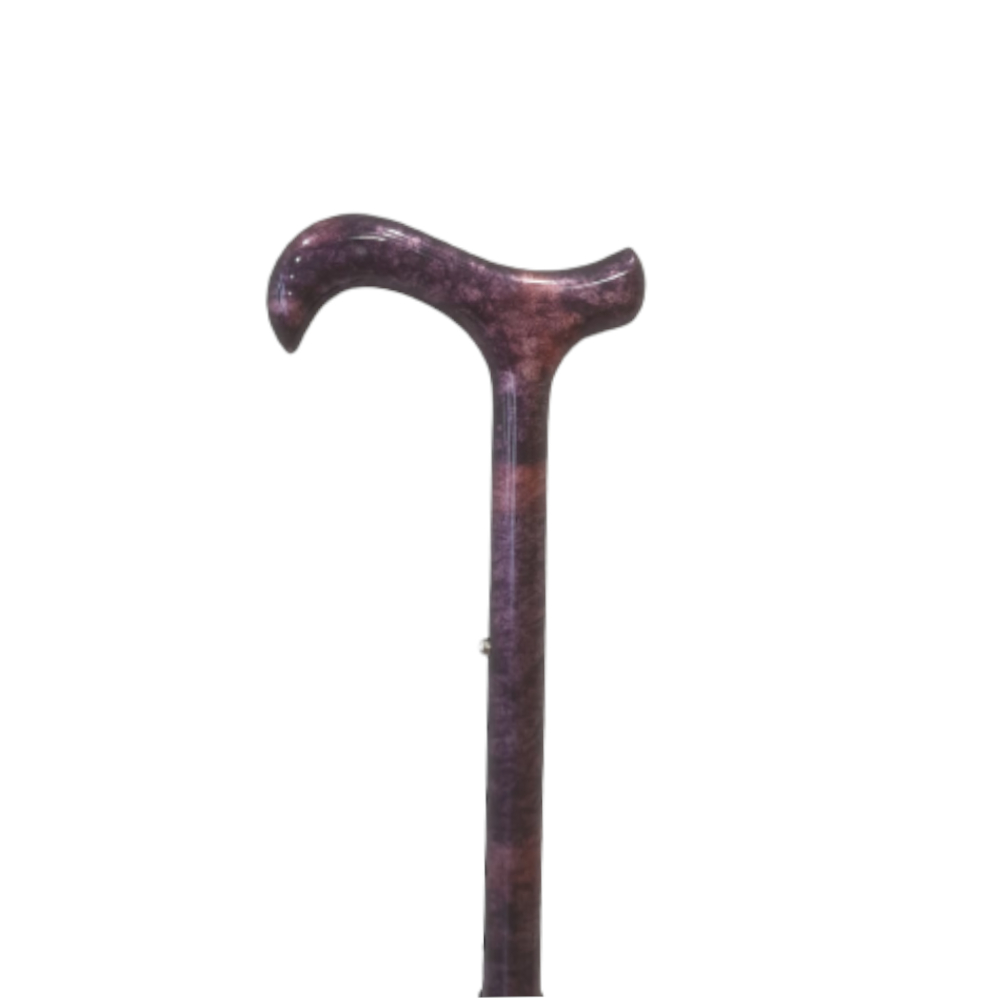 Esta muletilla plegable está fabricada en fibra de carbono. El tubo es de color morado con efectos de agua.