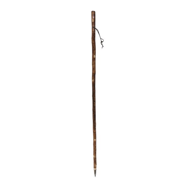 Bordón castaño flameado con brújula y contera metálica de pincho. Sus características principales son las siguientes: