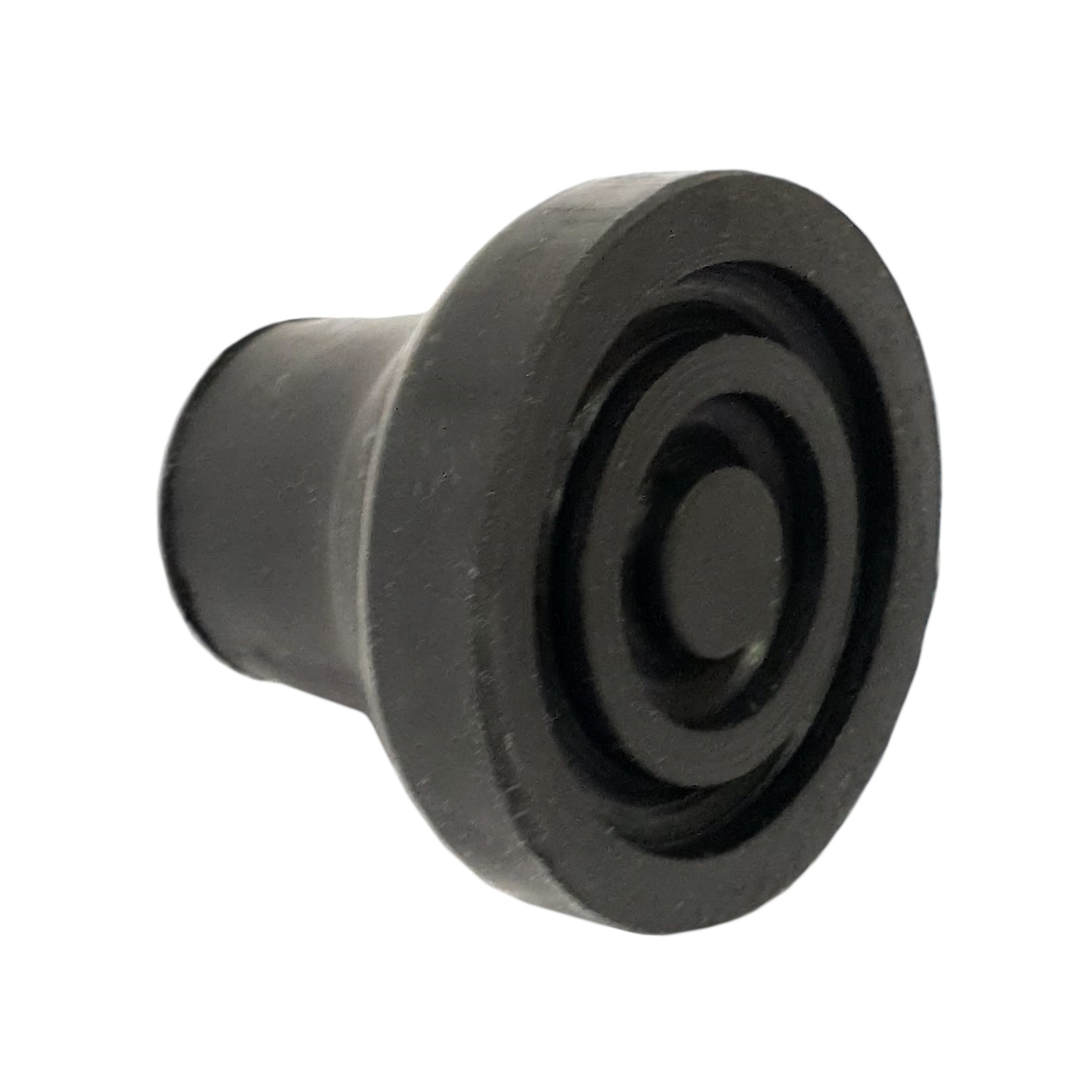 Se trata de una contera de goma para las cuadrípodes de aluminio. Se fabrica en color negro. El diámetro de esta goma es de 12 mm. y tiene una base de 36mm. Estas conteras están reforzadas con una arandela metálica en el interior de la base, que evita que el tubo del cuadrípode dañe o perfore su interior.